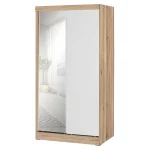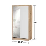 Crafted from premium laminated engineered wood in white & natural oak multi-color combination finish this cabinet is perfect for any contemporary, modern, cottage, shabby chic, or casual spaces. Storage behind full length sliding doors includes two compartments one with garment rod and the lower one is equally divides into two parts one side featuring a fixed shelf and other side have two equal drawers. Freestanding, sturdy, scratch and fade resistant closet designed for long life and better stability to help reduce tip-over accidents. One door boasts a mirrored front, allowing you to check your look before taking on the day. Modern yet functional slim-line design – Measuring only 19.5 inches deep, the slim-line design allows it to fit almost anywhere without disturbing your walkway and sliding door adds to easy access. Overall size: 19.5 D x 36.5 W x 71 H. Ships knocked down in one box. Assembly required, this storage cabinet with sliding doors and shelves is easy to put together, all parts and instructions are included in package.